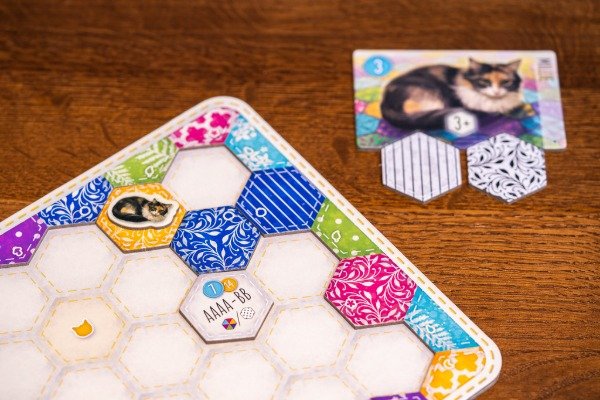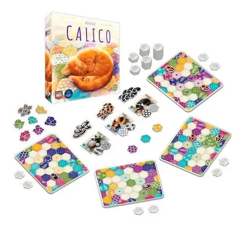 En Calico, los jugadores compiten para tejer la colcha mas cómoda cogiendo y colocando parches de diferentes colores y estampados en su tablero de colcha. Cada tablero tendrá 3 objetivos de diseño que otorgarán puntos si se cumplen sus requisitos. Los jugadores intentarán además crear grupos de estampados para atraer a los gatos más adorables y grupos de colores en los que coser botones. ¡El jugador que obtenga más puntos por sus diseños, gatos y botones, gana la partida.